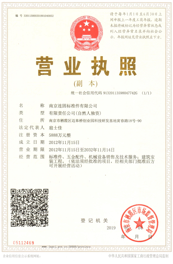 南京連固標準件有限公司,位于南京市棲霞區靖安鎮長江工業園,國家大型企業之一,真正的廠家直銷,價格實惠,現貨供應,庫存量較大,我公司是中國機械通用零部件協會會員,我公司長期與國內外大型企業,重點工程配套。"連固"品牌在國內外市場享有良好的聲譽,為了適應市場經營和自身發展的需要,我公司專業生產.銷售和批發碳鋼 .不銹鋼 .合金鋼 .銅.高強度標準件,年生產能力達8000多噸。碳鋼等級有:4.8級,6.8級,8.8級,10.9級,12.9級。不銹鋼材質有201. 202. 304. 316. 316L.904.904L。主要應用于機械設備,汽車制造. 鐵路.高速鐵路.建筑鋼結構、船舶、貨架,橋梁、道路,風力發電、石油管道等領域。產品質量和信譽得到客戶的一致好評。我公司經過十多年來的不斷努力形成了完整的工藝流程,建立了從...